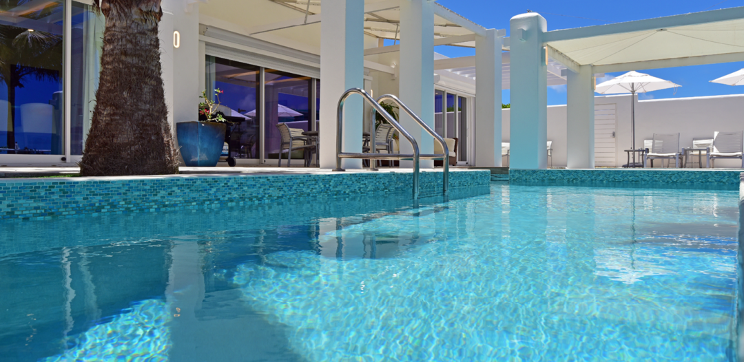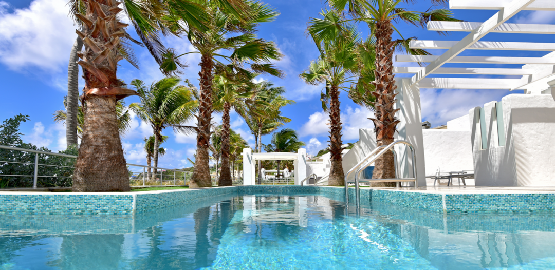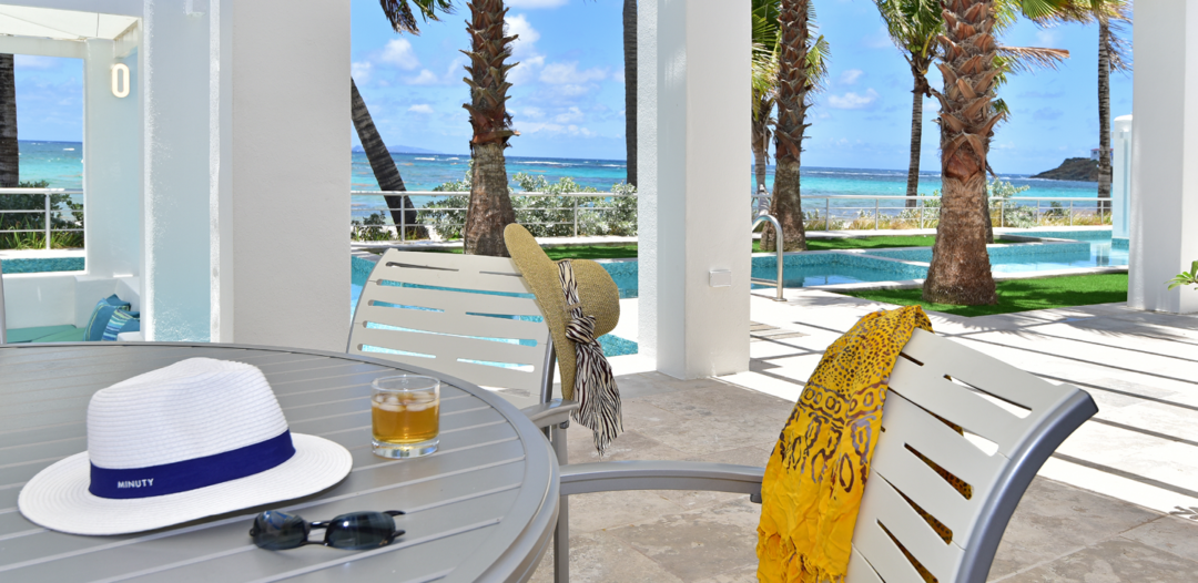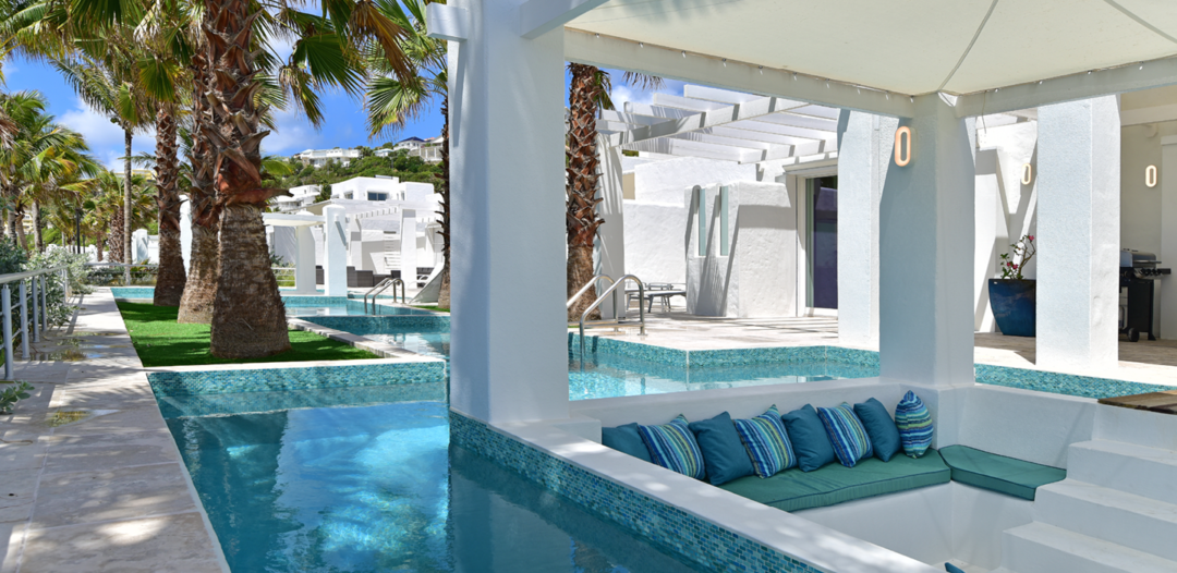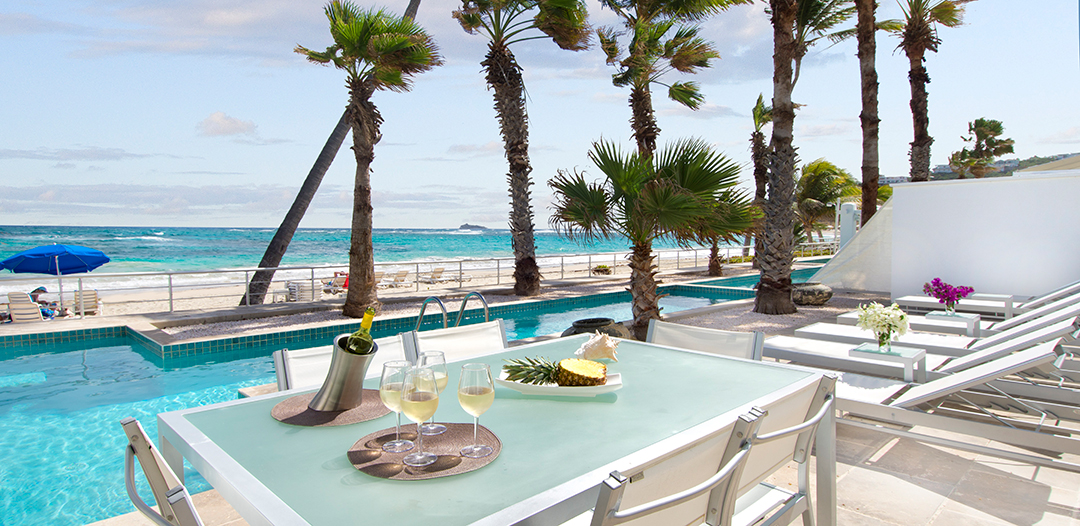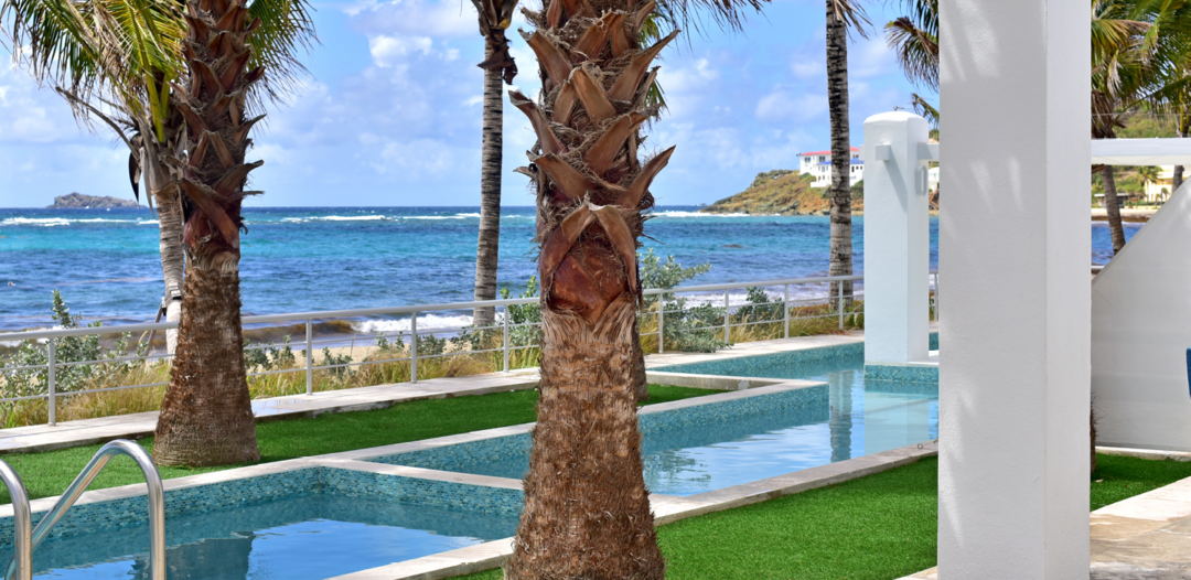 The villas are single level with a private plunge pool surrounded by a large, furnished terrace with your own private sunken gazebo area. Set directly on Dawn Beach, each villa has a fantastic view of the ocean and the neighboring island of St. Barths.