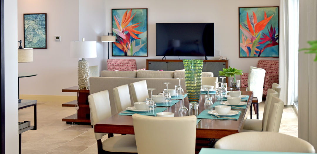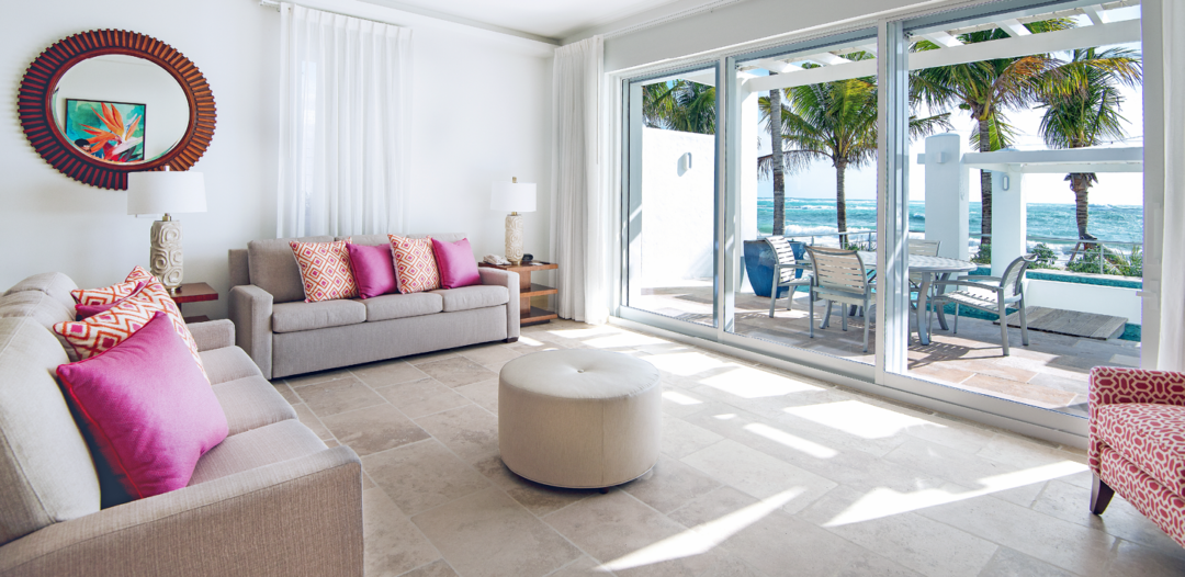 Three- and four-bedroom Beachfront Villas offer wonderful views of the ocean. Each villa offers spacious living and dining areas for gathering as well as beautifully appointed kitchens and bathrooms. The three-bedroom villa has sleeping and dining accommodations for 6 and the four-bedroom has sleeping and dining accommodations for 8.