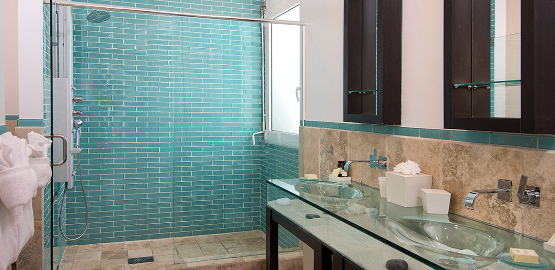 The villas offer luxury furnishings within the comfortable living area and travertine floors throughout the villa. You’ll find the dining accommodations are second to none. The fully equipped gourmet kitchen features electric cook top, oven, microwave, double-door refrigerator with ice machine, dishwasher and temperature-controlled wine cooler, blender, coffee maker, and a toaster.
